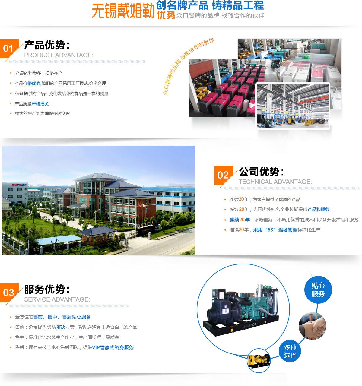 无锡戴姆勒动力设备有限公司运营的柴油发电机组品牌坐落于当今世界制造业聚焦的热土----江苏无锡高新技术产业开发区,拥有在亚洲乃至全球较大规模的柴油发电机组现代化生产基地,占地5万多平方米,总装车间1万平方米。 二十几年来,我公司专注致力于发电系统的科研、生产、销售和服务,提供发电系统全面解决之道,功率从8KW至4000KW,涵盖各种用途柴油、天然气发电机组,如静音型,集装箱式,拖车式,智能并联电站,高压发电机等。